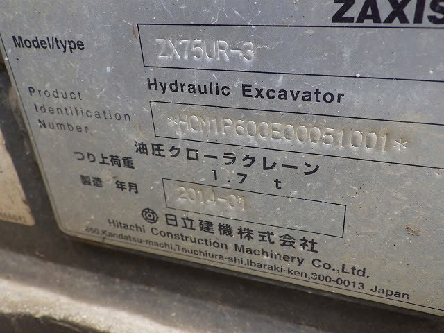 MÁY XÚC HITACHI ZX75UR-3 HCM1P600E00051001