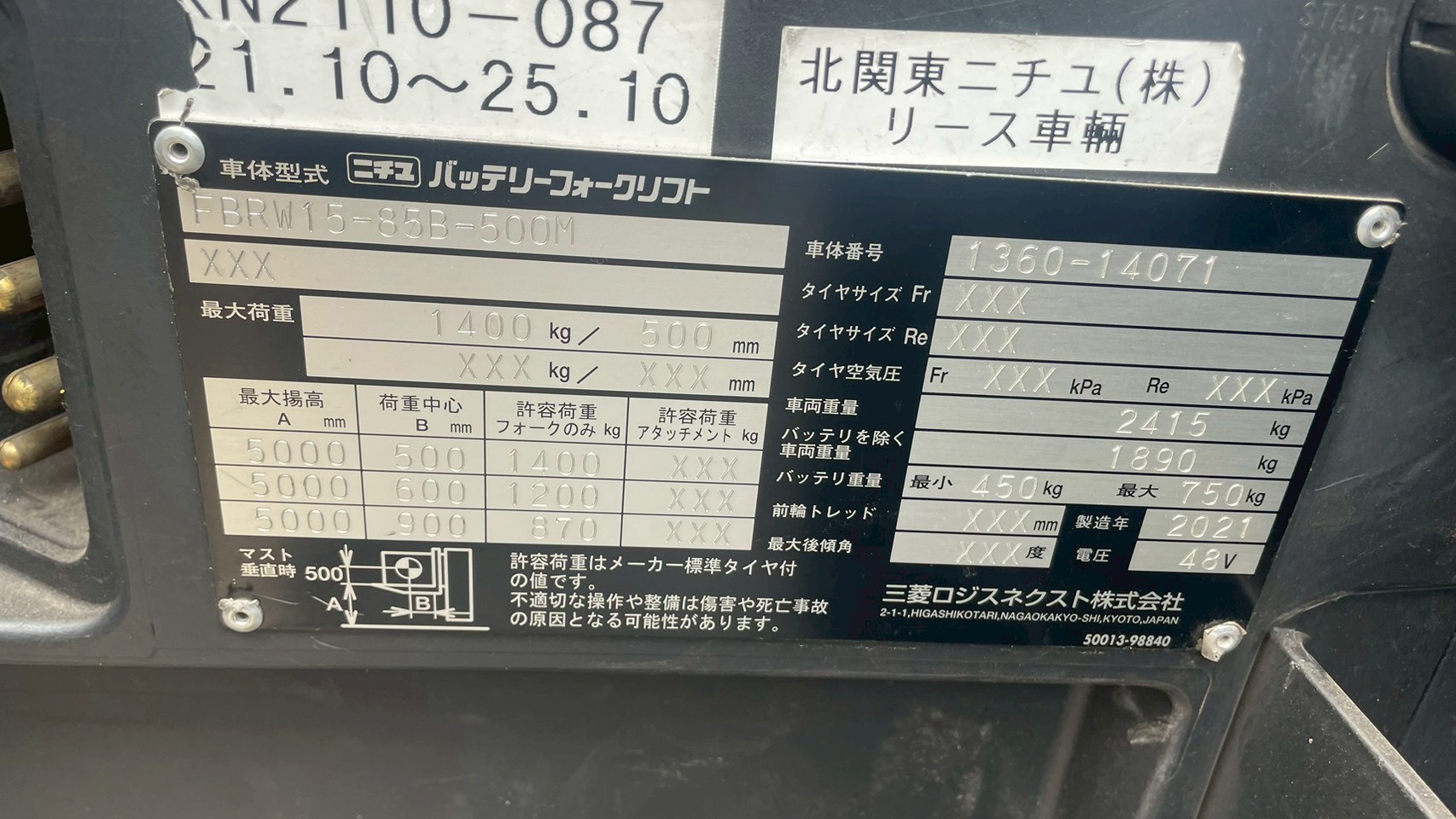 XE NÂNG NICHIYU FBRW15-85B-500M 14071